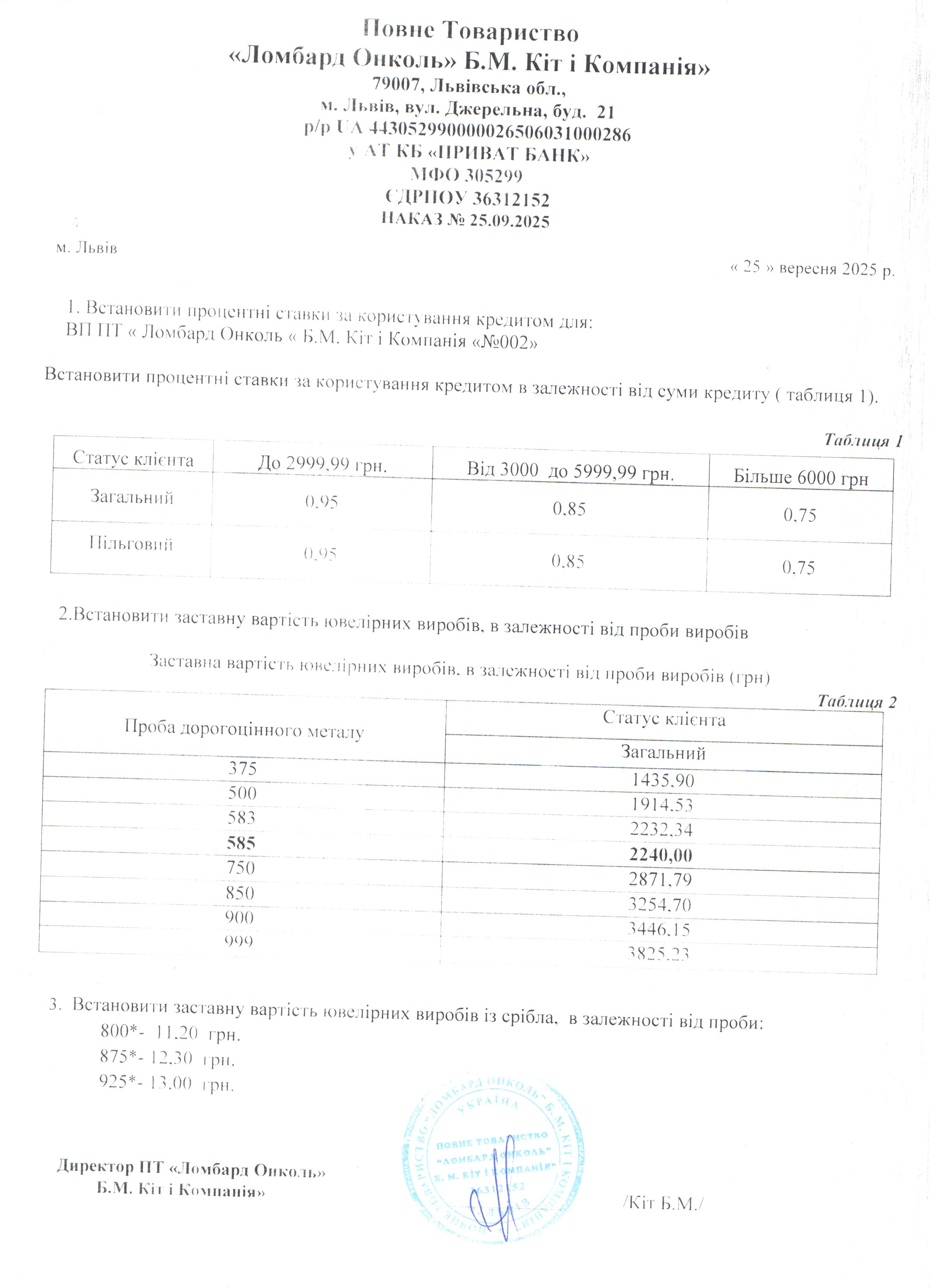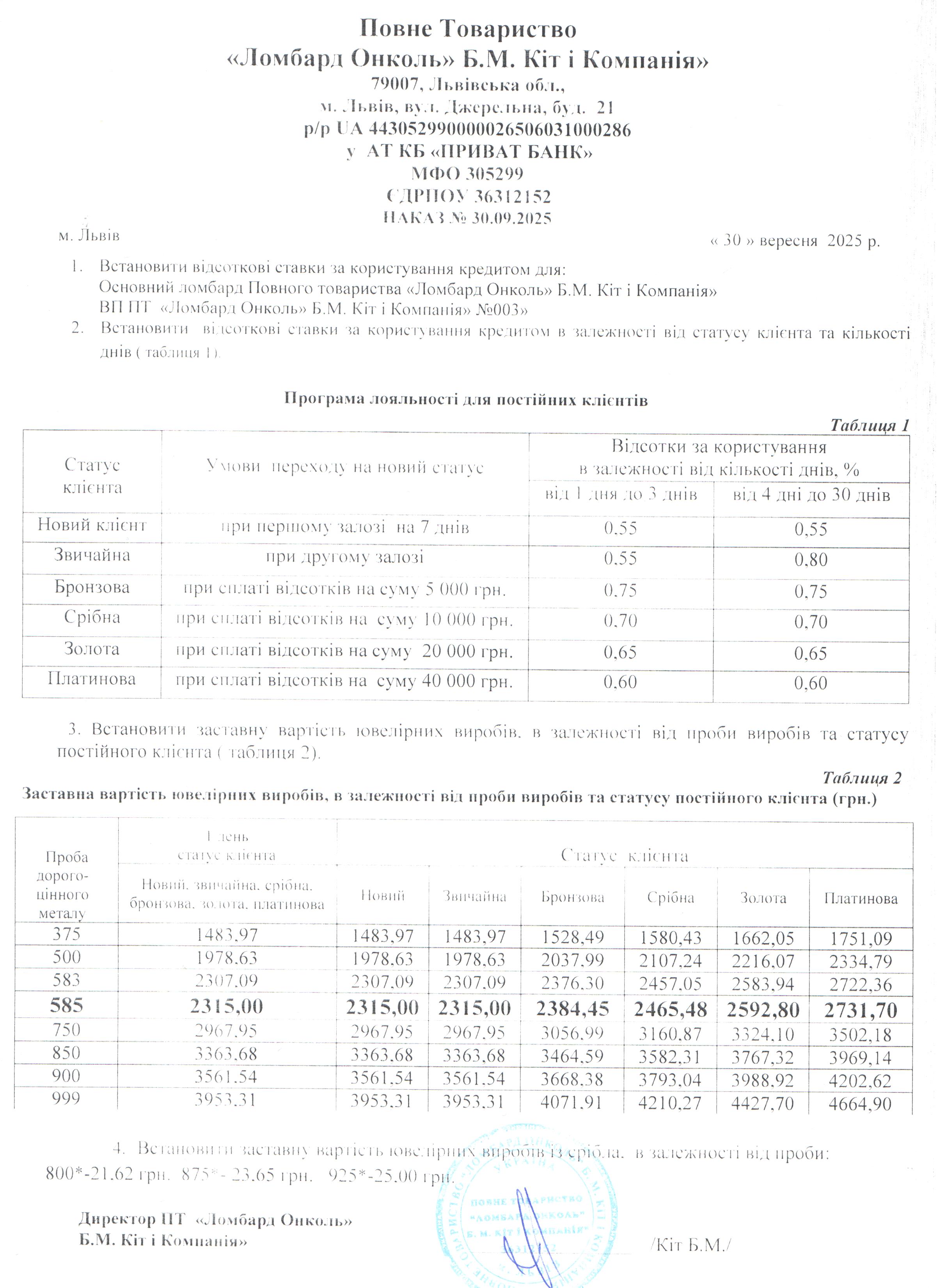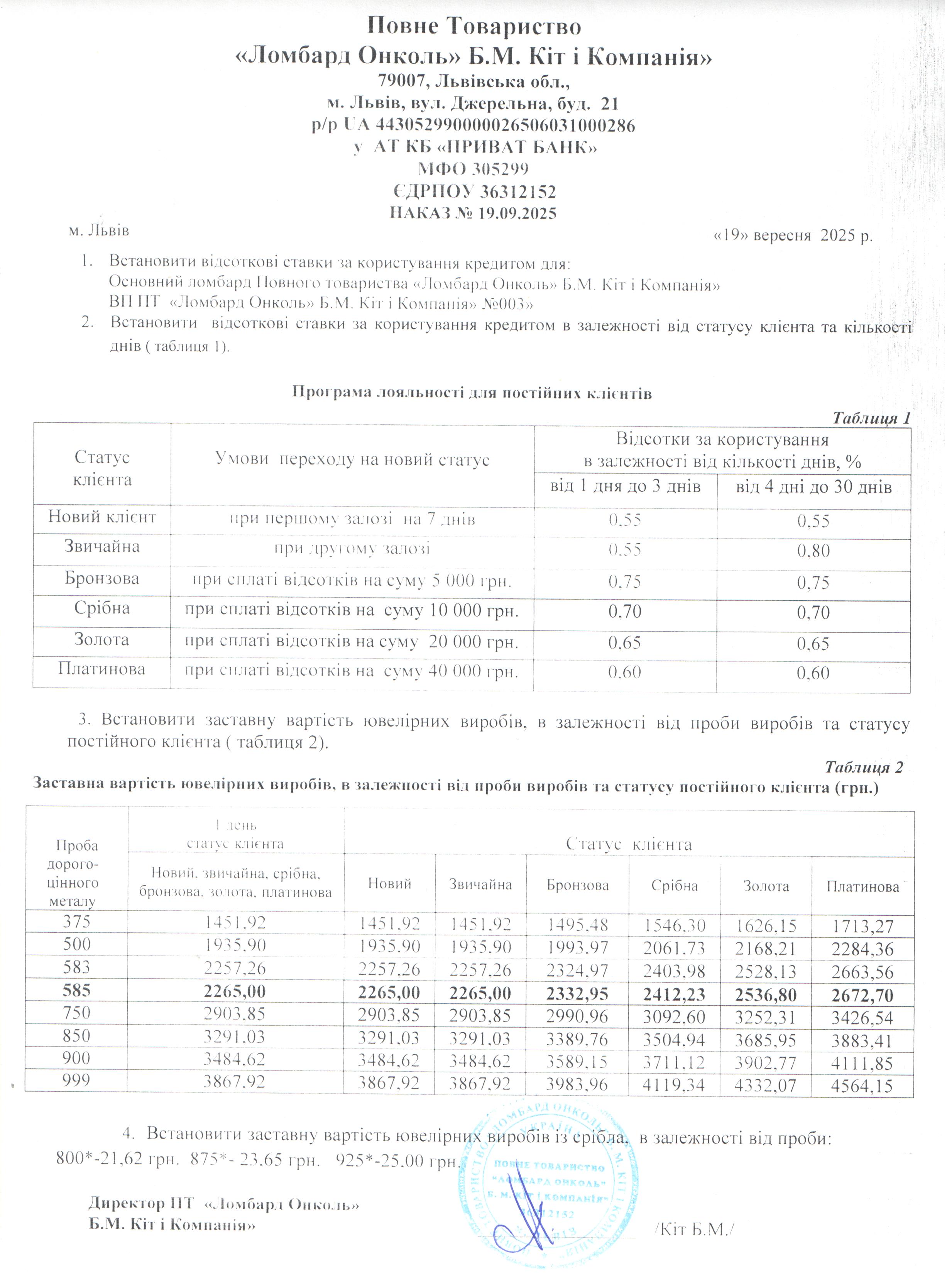 Повне Товариство "Ломбард Онколь" Б.М.Кіт і Компанія"