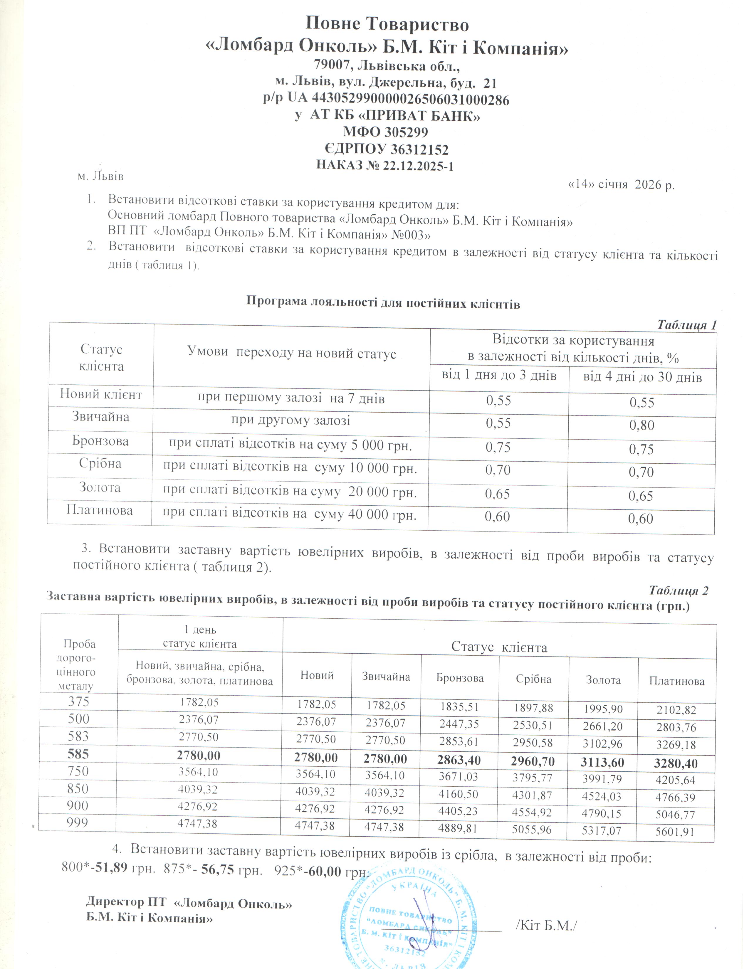 Повне Товариство "Ломбард Онколь" Б.М.Кіт і Компанія"